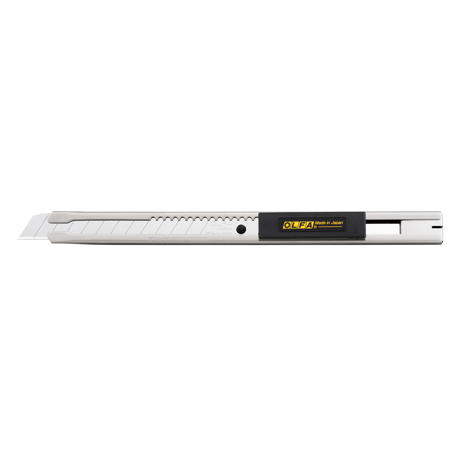 Нож OLFA с выдвижным лезвием и корпусом из нержавеющей стали, автофиксатор, 9мм очень популярная и практически незаменимая модель во всех направлениях – строительстве, производстве, автопромышленности и быту. Все показатели соответствуют мировым стандартам и готовы прослужить не один год: